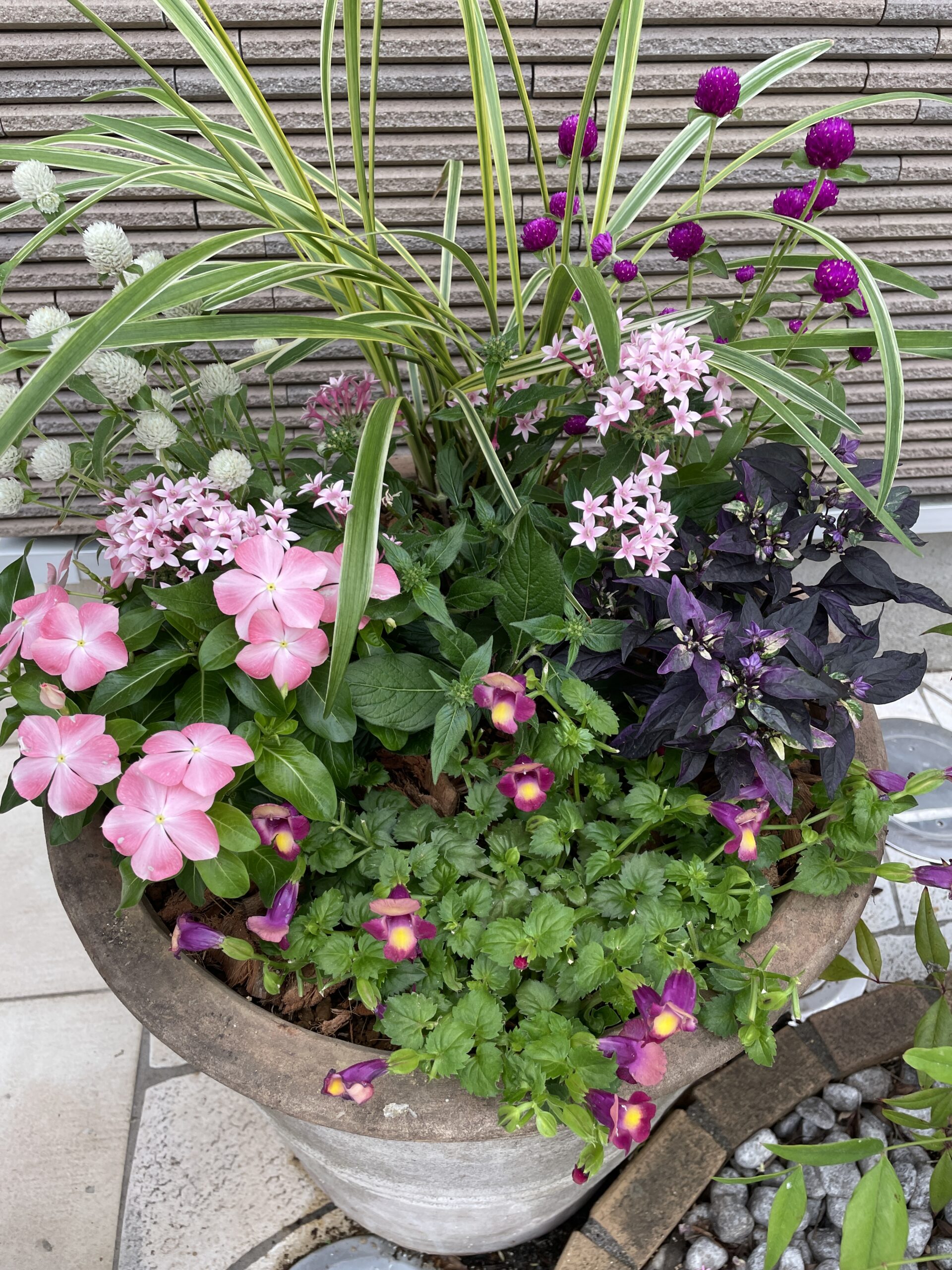 左側のピンクの日々草 、優しいピンクで心落ち着きますね!