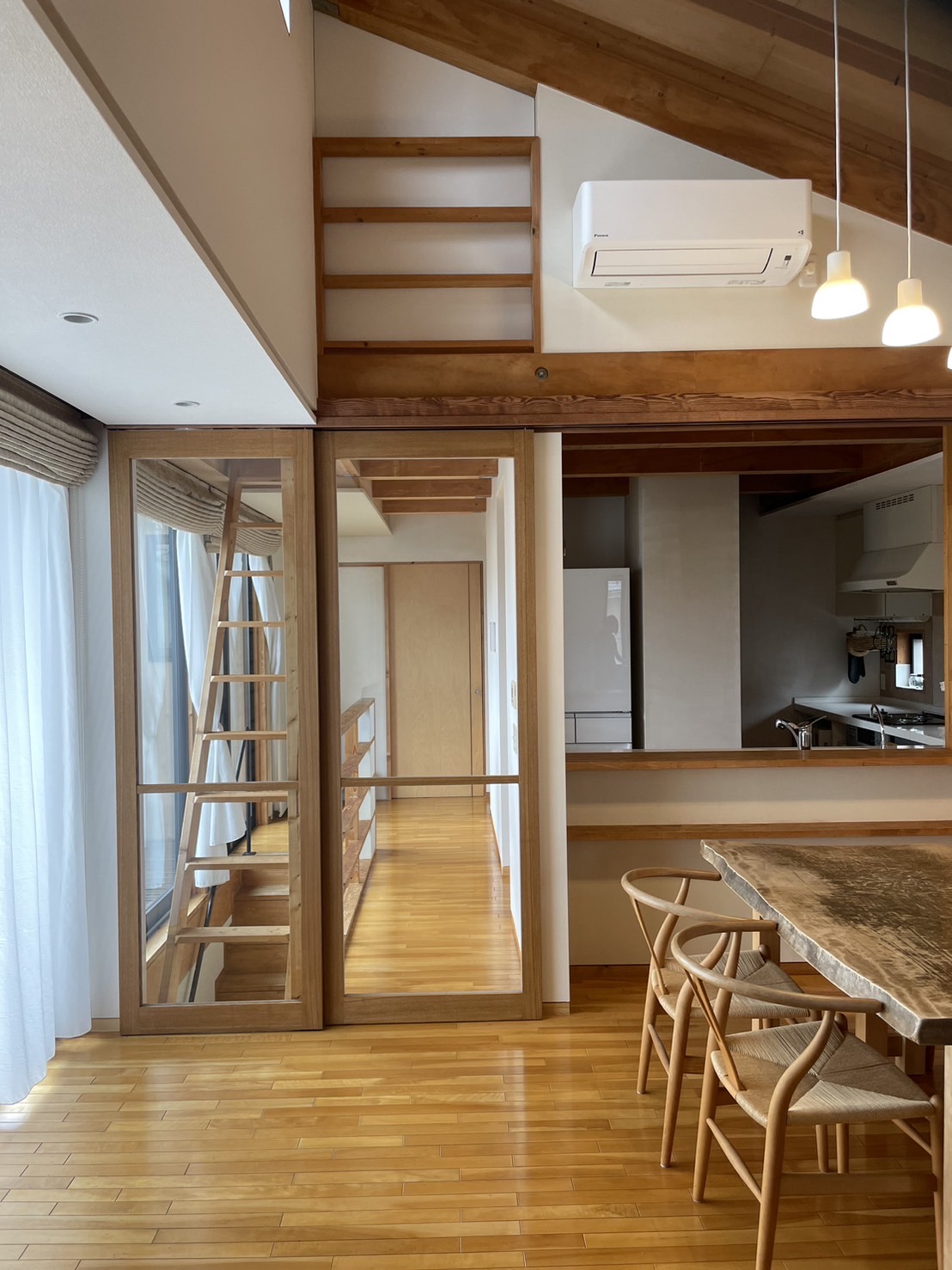 ガラス扉にすることで、解放間はそのままで冷暖房の効率があがります😊