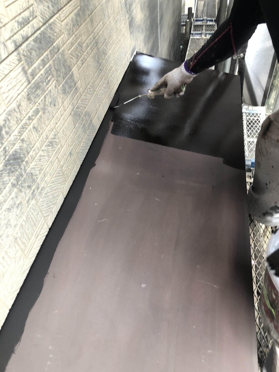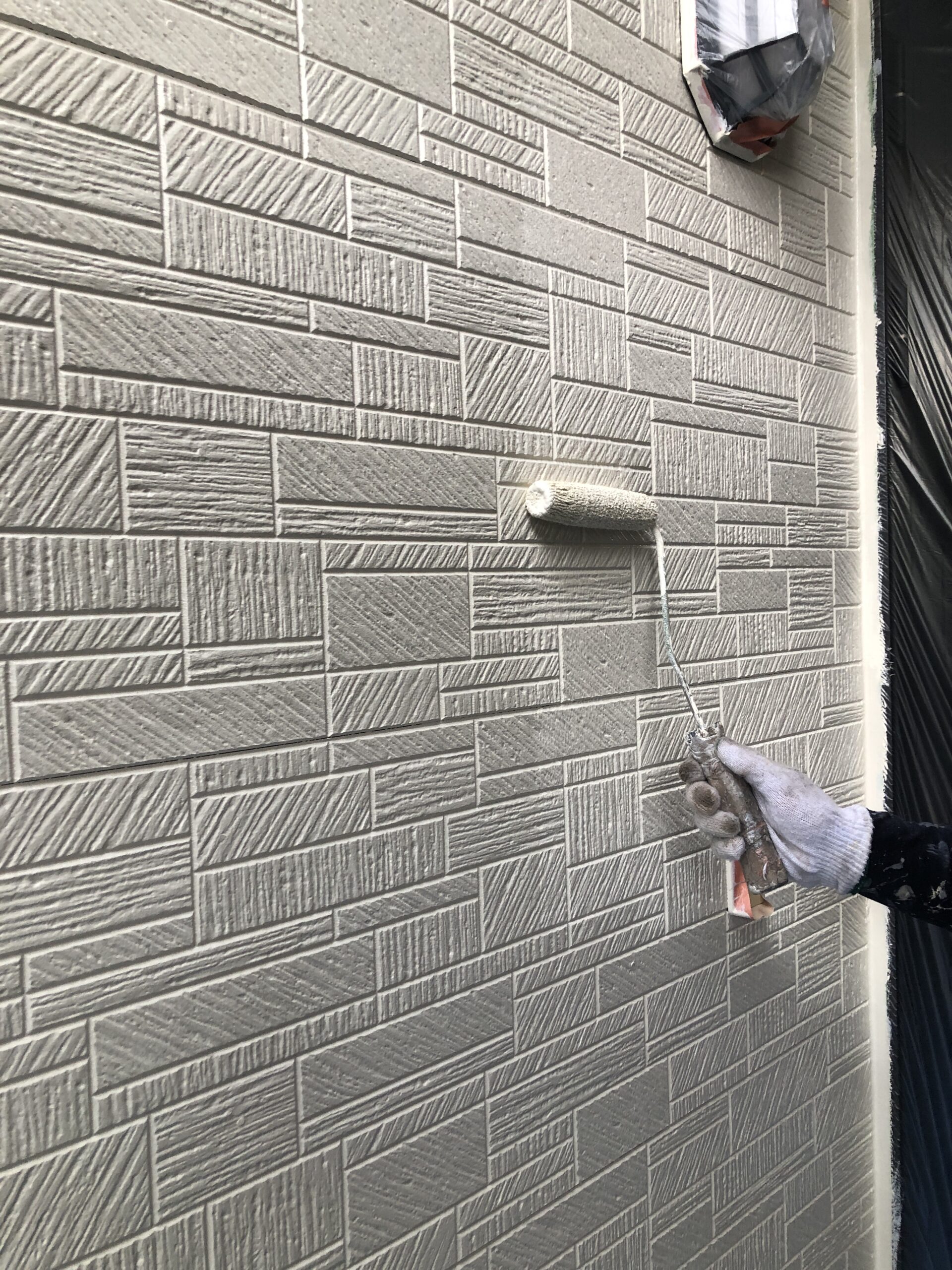 ↑ 下塗り中:下地の状態を整え、次の塗料をしっかり密着させます。