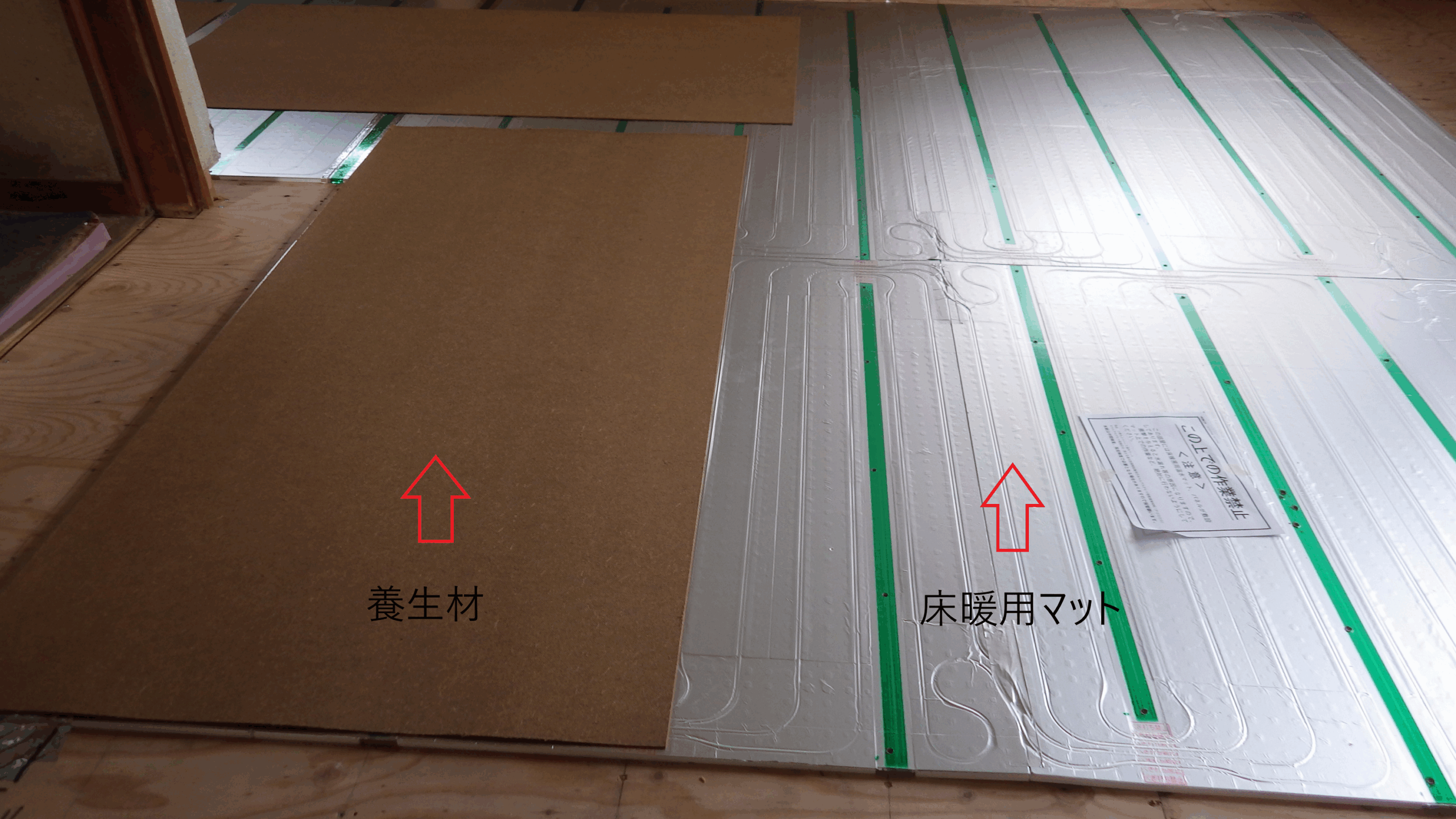 ④捨床材の上に、床暖用マットを貼り、最後にフローリング材を貼り完了です✨