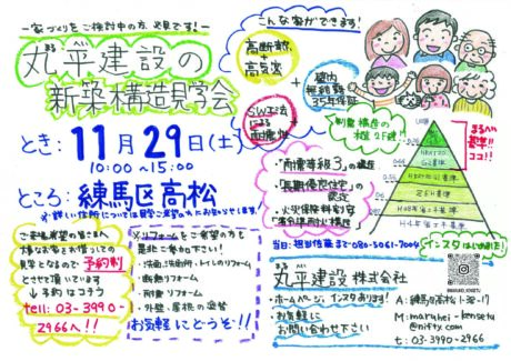こんにちは、まるへい建設です。 先週末構造見学を行いました。 ご来場いただきました皆様、ありがとうございます😊 構造見学会では、実際に建てている家の構造を見ながら、 高気密高断熱、耐震とSW工法(弊社施工方 […]